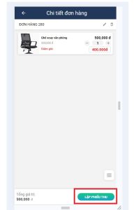 Khi nhân viên thu tiền nhấn nút lập phiếu thu trên mobile, họ sẽ nhập số tiền tạm ứng vào trường số tiền, sau đó nhấn nút tạo phiếu để hoàn tất giao dịch. Trạng thái của đơn hàng là đã tạm ứng cộng với số tiền đã được tạm ứng trước đó.